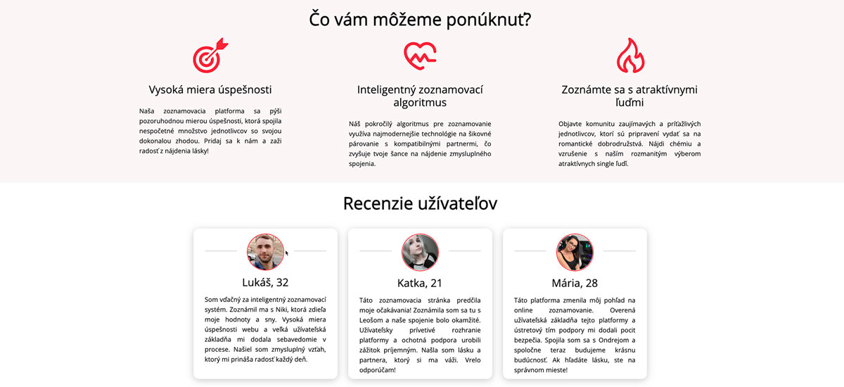 „Pre ženy členstvo zadarmo. Výhoda :-). Tak som to tu skúsila. Vyplnila som svoj profil a len sa nechala unášape prúdom. Za pár okamihov začali lietať ponuky. Človek musí hľadať, ale ihla sa dá nájsť aj v tejto kopke sena.