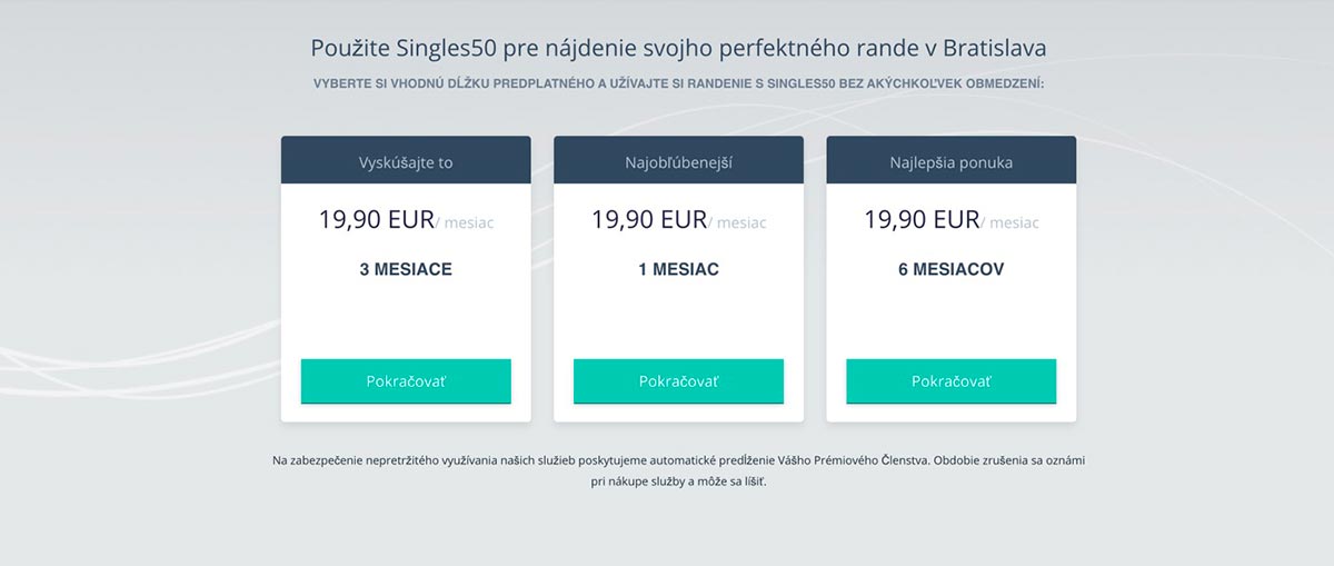 Singles50 sa zameriava na bezpečnosť svojich používateľov, ponúka šifrovanie komunikácie a má mobilnú aplikáciu na pohodlnejšie používanie. Funkcie zoznamky sú v základnej verzii k dispozícii zadarmo, ale pre plný prístup vrátane neobmedzeného zasielania správ, viditeľnosti fotografií a rýchlejšieho prehliadania profilov si musíte zaplatiť VIP členstvo.
